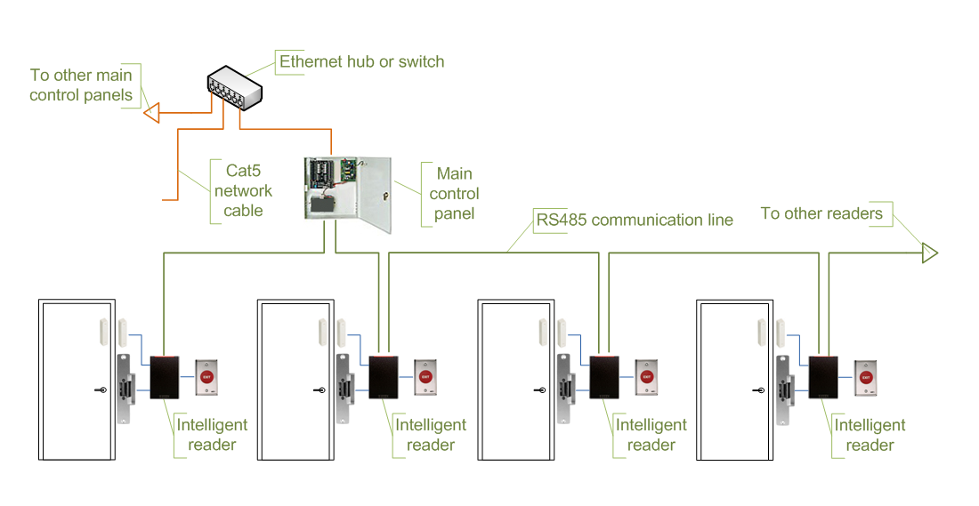- Puntos de acceso: Son las puertas, torniquetes o barreras que regulan el acceso.